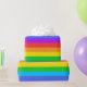 Papel de envoltura diseñado con un patrón rayado con colores arcoiris brillantes de gran tamaño.