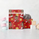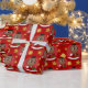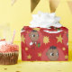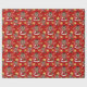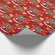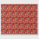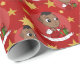 Navidades envolviendo papel con el ilustracion de un lindo sonriente feliz bebé o niño negro, el bebé lleva ropa roja y blanca y tiene un regalo; con plantilla de texto editable para tu nombre o mensaje, Navidades diseño de vacaciones con un fondo rojo sin fisuras con estrellas