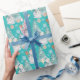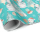 Navidades acuarelas envuelven papel de envolvimiento con hombres de nieve jugando pickleball sobre el fondo verde de la minoría. Gran idea para envolver tus regalos para tu amigo o miembro de tu familia de pickleball