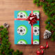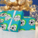 Papel envuelto que se muestra con una estampilla de fútbol deportivo sobre un fondo turquesa. Personalizar este artículo o compra tal cual.