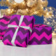 Un rollo de papel envuelto con un hermoso diseño de patrones de chevrones morados y rosas.