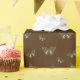 Los puntos ocre, negro, blanco y verde crean patrones ondulados y acentúan los puntos de esta mariposa de cola tortuosa, inspirada en el arte puntiagudo tradicional de la población aborigen de Australia.