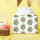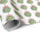 Este papel de envoltura presenta retratos acuarelas de bolas de mistletoe atadas con arcos de cinta rojas y blancas.
