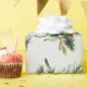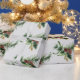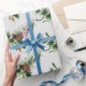El papel de envolvimiento festivo y de invierno para el Holidays presenta un patrón acuarela de ramas siempre verdes con pinecones sobre fondo gris claro.