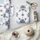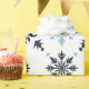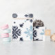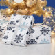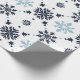 Bonitos azules con fondo blanco diseño minimalista de copos de nieve envuelto papel adecuado para regalos navideños. Vea también etiquetas coincidentes.