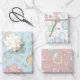 Un impresionante conjunto de 3 diseños de papel de envoltura pastel con sueños de alfabeto, sueños de dinosaurios y sueños de globos. Perfecto para duchas de bebé, cumpleaños de niños y regalos con temática de guardería, con suave color de agua y estilo lúdico.