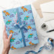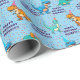 Los temas del cumpleaños de los dinosaurios son populares este año y este papel de envoltura se destacará entre el resto. Este diseño incorpora lindos dinosaurios y puntos multicolores sobre un fondo de color cohesivo. El texto está disponible para personalizar tu deseo.