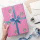 Papel de envoltura rosa de garganta escarpado, algunas ranas con un pequeño gorra de cumpleaños