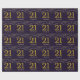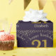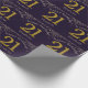 Número 21 en oro purpurina simulado con diamantes en caída sobre púrpura oscuro sólido. Feliz cumpleaños con una letra en blanco y sin rostro. Personalizar con los nombres del destinatario o mensaje personal.