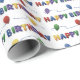 Papel de envolvimiento feliz cumpleaños brillante y colorido con muchos globos.