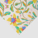 Este animado patrón floral exhibe daffodils amarillos brillantes entrelazados con hojas verdes exuberantes, complementados por mariposas y libélulas extravagantes. El diseño colorido es perfecto para los textiles, papel pintado y papelería, añadiendo un toque de encanto natural.