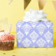 Elegante papel de envoltura para todos los propósitos hecho en blanco sobre un patrón de damasco azul peringuil. Personalizar para añadir texto para un toque personal. Bonito papel de envoltura para cumpleaños y regalos de boda.