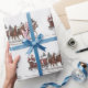 Navidades de campo Santa en el trineo con la señora Claus, en un papel de envolver rústico y elegante.