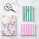 Un patrón de flamingo de bonito esbozado y colorido con rayas coincidentes para completar el conjunto de tres.