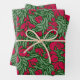 Bonitas y sofisticadas sábanas de papel envuelto con flores silvestres en rojo, blanco, verde, sobre un fondo verde. También disponible con fondo blanco. Perfecto para los Navidades/temporada de vacaciones. Viene con tres hojas con el mismo patrón.