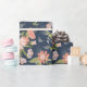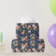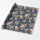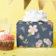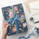 Papel de envolver a la moda inspirado en las flores botánicas y las abejas en tonos azul marino, rubia y melocotón. Perfecto para bodas con temática botánica y duchas de novios.