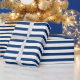 El papel de envolvimiento a rayas azules y blancas de la Marina presenta rayas azules y blancas para que su presentación de regalo sea bonito, clásica y de buen gusto. Funciona para todas las ocasiones. Ver más reajuste de regalo de bonito en nuestra tienda en zazzle.com/TheRightNote para cuando quieras tocar la nota correcta con tus tarjetas, regalos y otros documentos.
