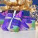 Amethyst Purple Sunflower Swirl rodeado de flores amarillas y violetas y de naranjas verdes azules