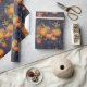 Papel de envoltura de Halloween - Diseño no 1: Un diseño inspirado en calabaza y cactus sobre un fondo azul oscuro. Con telarañas y viñas que le dan un toque final al diseño.