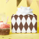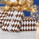 Papel de envoltura diseñado con un patrón de arlequín marrón y blanco de gran tamaño. Puede cambiar el blanco por otro color de forma sencilla.