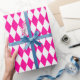 Papel de envoltura diseñado con un patrón de arlequín blanco y rosado en gran tamaño. Puede cambiar el blanco por otro color de forma sencilla.