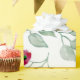 Hojas de color de agua floral verde con flores rojas pequeñas Papel envuelto