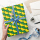 Una bandera guyana en forma hexagonal forma la base del diseño teselado en este papel de envoltura. Esta sería la manera perfecta de envolver un regalo para o de alguien con una conexión guyanesa.