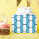 Una bandera guatemalteca con forma hexagonal forma la base del diseño teselado en este papel de envoltura. Esta sería la manera perfecta de envolver un regalo para o desde alguien con una conexión guatemalteca.