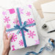 Caliente rosa, Fuchsia y Morado Árboles de invierno de Snowman esparcen papel para envolver regalos de niñas. Este papel de envoltura de bonito tiene hombres de nieve, copos de nieve y árboles de Navidad con estrellas. Las palabras Felices Fiestas, Saludos de Temporada y Feliz Navidad también están en el papel. Ideal para regalos de vacaciones.