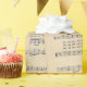 Golpee la nota correcta con este papel de envoltura vintage con partituras de papel de Navidades superpuestas. Las letras mencionan a Santa Claus y los árboles de Navidad. Ideal para los amantes de la música.