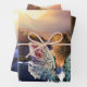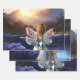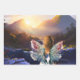 Un diseño realmente encantador para envolver los regalos más especiales. Representación artística de una criatura mítica viendo el amanecer. Bonitos tonos azules, violeta y lavanda con toques de rosa y naranja se mezclan armoniosamente. Todo el panorama crea sentimientos de esperanza y que todo es posible.