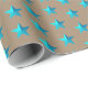 Papel rústico de envoltura de kraft para la fiesta de los Navidades con estrellas azul turquesa en un patrón repetido en un papel kraft cálido.