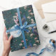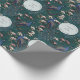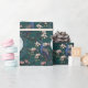 El envolvimiento de pavos de pavos Verde azulados florales con un estilo chino de pavos reales azules y verde azulados dibujados a mano encaramados sobre ramas de árboles de Magnolia en flor, con un elegante fondo verde verde azulado oscuro. Todo el texto es editable. Personalice el encabezado, los nombres y la fecha en la página del producto haciendo clic en "Personalizar esta plantilla".