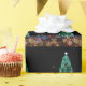 Un alto árbol de Navidad y brillantes luces navideñas decoran este alegre papel envolvente. Haga sonrisas de vacaciones para esa persona especial, con este periódico festivo.