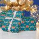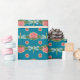 Un rollo de moda Giftwrap, con un patrón de Nieves y Dragonflies en un fondo azul de gasolina, de un collage de papel pintado a mano de Judy Adamson. Parte de la colección Posh & Painterly "Lily Pond".