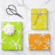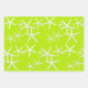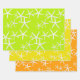 Patrón estelar envolver hojas de papel con colores cítricos. Estrellas de mar blanco de varios tamaños se reparten sobre hojas planas de papel en tonos limón cítrico, cal y naranja. Perfecto para envolver regalos para cualquier ocasión en un tema tropical. Este papel de alta calidad será apreciado en un boda de verano, cumpleaños o ama de casa.