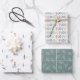 Cute papel de envolver a los Navidades verdes. El papel de envolvimiento ilustrado lindo presenta botánicos verdes, escenas de invierno y "ho ho ho" en tipografía colorida.