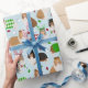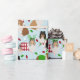 Perros de Cute Rough Collie vestidos con trajes festivos, sombreros de Santa y sudaderas de argyle con adornos de Navidad dispersos.