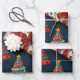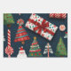 Hermosos Navidades envueltos en papel con un alegre diseño navideño con copos de nieve, adornos y árboles navideños con colores festivos de rojo, verde y oro. ¡Perfecto para añadir alegría de vacaciones a tus regalos!