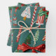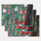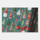 Hermosos Navidades envueltos en papel con un alegre diseño navideño con copos de nieve, adornos y árboles navideños con colores festivos de rojo, verde y oro. ¡Perfecto para añadir alegría de vacaciones a tus regalos!