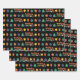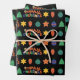 Hermosos Navidades envueltos en papel con un alegre diseño navideño con copos de nieve, adornos y árboles navideños con colores festivos de rojo, verde y oro. ¡Perfecto para añadir alegría de vacaciones a tus regalos!
