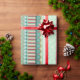 Alegre envoltura de regalo con un patrón de rayas Navidades lleno de estrellas, flora de invierno y corazones. Obra original de Marketa Stengl.