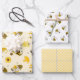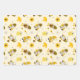 Un papel de envoltura de regalo con la temática de una abeja muy lindo en un set de 3. Presenta los siempre populares gnomos de abejas, cacerolas de miel con goteo, girasoles, margaritas, abejas y manchas de gingham doradas amarillas.