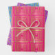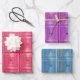 Papel de envoltura de neón decorativo, elegante y llamativo, de color rosa, turquesa, azul y violeta con cuadrados dorados brillantes que se conectan para crear una fascinante ilusión 3D.
