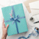 Los tonos verde azulados, dorados y blancos se unen para dar un aire fresco a un bonito motivo de mosca geométrica abstracta.