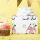 Oso polar con bufanda rayada roja y blanca en la nieve