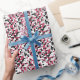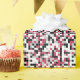 Este papel envolvente presenta un patrón geométrico colorido en Viva Magenta, negro, gris y blanco, con rejilla blanca. Los cuadrados están coloreados en un patrón aleatorio y se pueden editar los colores en la herramienta Diseño.