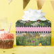 La imagen de este producto representa un jardín de flores de primavera; las flores coloridas en hermosos tonos amarillos, blancos, rosas, violetas, lavanda y fucsia, con un divertido recorte de puntos de polka.