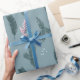 Una bonita opción de envolver para cualquier ocasión con plumas de pollo y agujas de pino picante azul.