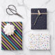 Papel de envoltura de tejas, polka y rayas con colores negro y arcoiris. Perfecto para un regalo de cumpleaños para niños y chicas.